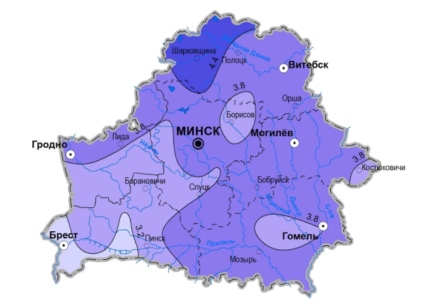 By region the largest negative temperature deviations from the climatic norm were recorded in the Vitebsk region (average for the region 4.3°C), and the smallest in the Brest region (average for the region 3.3°C).
