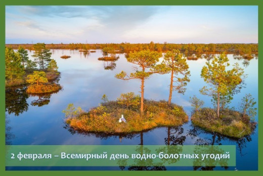 2 февраля ежегодно во всем мире отмечается день водно-болотных угодий. Именно в этот день 2 февраля 1971 г. в иранском городе Рамсар была подписана Конвенция о водно-болотных угодьях, имеющих международное значение главным образом в качестве местообитаний водоплавающих птиц. Республика Беларусь ратифицировала Рамсарскую конвенцию в 1999 году. Основной целью конвенции является сохранение и рациональное использование водно-болотных угодий как средства достижения устойчивого развития во всем мире.