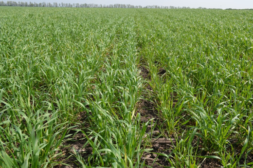На наблюдательных участках большей части территории области с озимыми зерновыми культурами отмечается кущение, местами по северо-востоку – третий лист и образование узловых корней. Высота растений, измеренная до конца верхнего листа, на конец прошедшей декады составила от 9 до 16 см. Линейный прирост растений за декаду составил 1 - 4 см. Густота стеблестоя варьировала от 320 до 626 растений на 1 м².