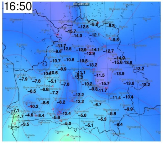 Днём 21 января в Бресте и Малорите отмечалось увеличение температуры воздуха (максимальная температура днём в Бресте была -0,8 ᵒС, в Малорите – -0,5 ᵒС). Несмотря на влияние сибирского циклона на территории Беларуси, на юго-западе Брестской области было значительно теплее, чем в других районах, за счёт циклональной деятельности с территории Польши.