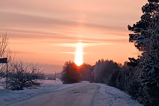 Утром 18 января жители Березовского района Брестской области наблюдали необычное явление – световой солнечный столб.