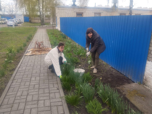 На территории отдельное внимание уделили клумбам, на которых скоро появятся первые весенние цветы, а также уборке от сухих веток и покраске бордюров.