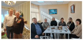 За окном – золотая осень, а на календаре – праздник у людей золотого возраста. Ежегодно 1 октября в Беларуси отмечают День пожилых людей.  Филиал «Гомельоблгидромет» сердечно поздравляет пенсионеров, ветеранов филиала и людей преклонного возраста с Международным днём пожилых людей –  праздником мудрости, добра и уважения! За Вашими плечами – большая жизнь. Вы представляете собой живую связь времён и поколений. Ваши знания, мудрость и богатейший опыт особенно важны в современных условиях, когда наряду с инициативой молодых требуется жизненная мудрость старших. Накануне Международного дня пожилых людей начальник филиала Сергей Лужков и член первичной профсоюзной организации филиала Екатерина Лившиц посетили на дому бывшего несовершеннолетнего узника концлагеря Озаричи Николая Межохина. Они выразили ему тёплые слова и пожелания крепкого здоровья, а он, в свою очередь, не сдерживая эмоций, рассказал о тяжёлых днях Второй мировой войны, о жизни в концлагере и о том пути, который ему пришлось пройти уже после 1945 года, и поблагодарил за внимание. Сотрудники филиала остались под большим впечатлением от рассказа Николая Межохина и поблагодарили его за искренность и проделанный труд и вручили памятные подарки. В Международный день пожилых людей для сотрудников-пенсионеров, которые продолжают работать, было организовано чаепитие в знак уважения и благодарности за их труд. Это специалисты, которые много лет работают в гидрометеорологической службе, и у которых за плечами колоссальный жизненный опыт. В тёплой и дружеской обстановке работники общались, вспоминали свой путь в гидрометеорологической службе, свои профессиональные и трудовые достижения. Важно и то, что своей мудростью эти специалисты всегда с открытой душой делятся с молодым поколением, помогая молодёжи знать историю гидрометеорологической службы. За этим – будущее! И нынешнее поколение работников Филиала «Гомельоблгидромет» по праву может гордиться своими ветеранами труда, которые в своё время вложили много сил в становление гидрометеорологической службы и теми, кто продолжает вкладывать свои силы в её развитие. Филиал «Гомельоблгидромет» желает всем тем, кто находится на заслуженном отдыхе или продолжает трудиться, несмотря на возраст, крепкого здоровья, активного долголетия, душевного тепла и счастья! Пусть в Ваших домах царит благополучие, здоровья и жизненных сил хватит на реализацию всех планов, а в отношениях окружающих к Вам преобладает уважение и почёт! Низкий поклон Вам за всё!