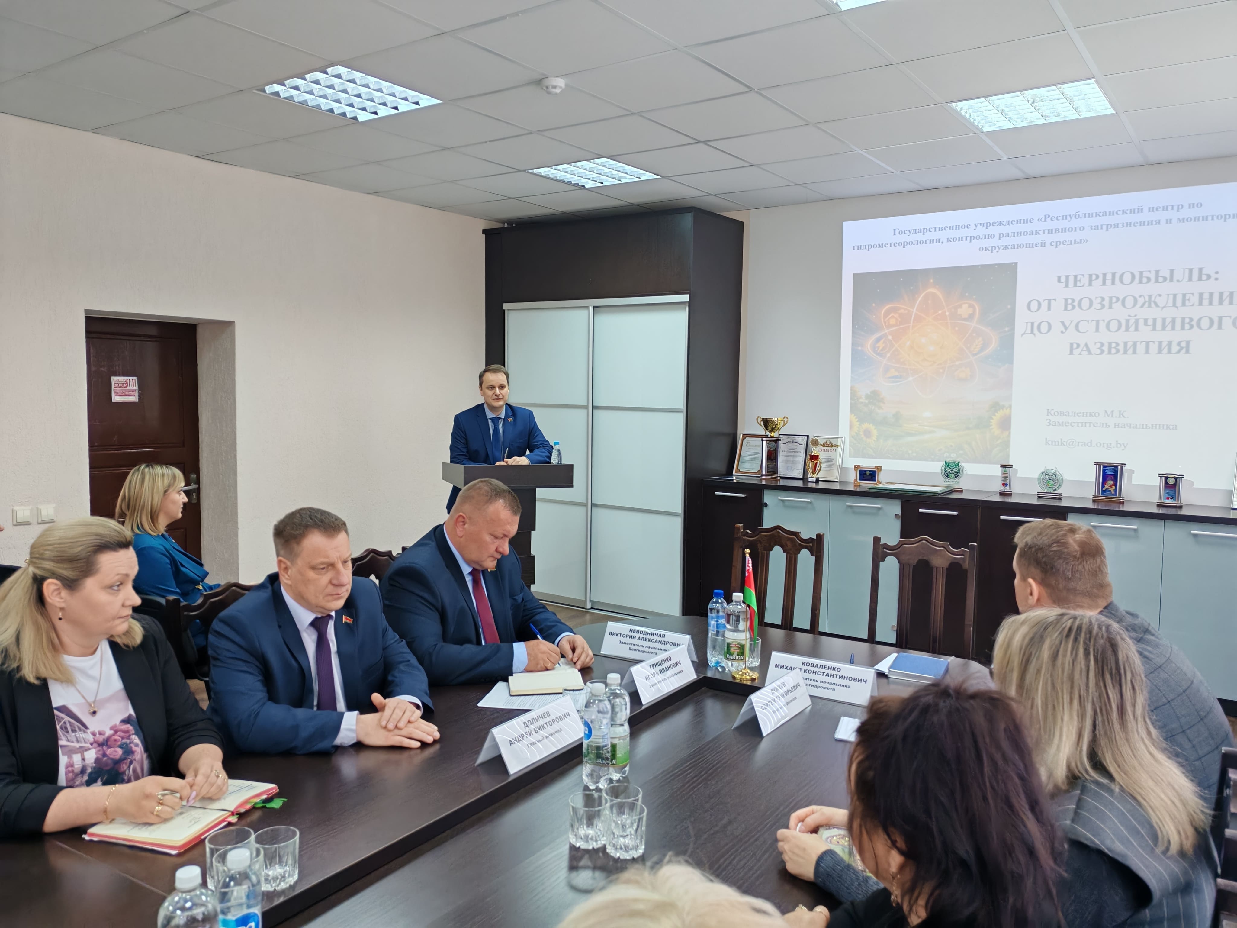 16 апреля, накануне 40-й годовщины аварии на Чернобыльской АЭС, которая произошла 26 апреля 1986 года, в Филиале «Гомельоблгидромет» прошёл Единый день информирования на тему «Чернобыль – от возрождения до устойчивого развития» с участием представителей Белгидромета – заместителя начальника Белгидромета Михаила Коваленко и заместителя начальника Белгидромета по идеологической работе Виктории Неводничей.