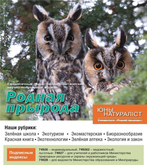 «Родная прырода» – научно-популярный и экологический  журнал, посвященный природе Беларуси во всем ее многообразии. В центре внимания не только уникальные природные ландшафты, животный и растительный мир, но и все аспекты, касающиеся охраны окружающей среды и рационального использования природных ресурсов, изменения климата. Журнал  «Родная прырода» – это и прекрасный фотоальбом о природе: на страницах журнала можно  увидеть  лучшие фотоснимки животного и растительного мира от профессионалов и любителей. «Родная прырода» рассчитана на широкий круг читателей. На страницах журнала раскрываются многие секреты природы, также размещаются стихи, рассказы и кроссворды на природную  тематику, разнообразные рубрики. Особое внимание уделяется специальному выпуску «Юный натуралист», который адресован подрастающему поколению и делает знакомство с природой увлекательным и познавательным. Подписка на второй квартал 2026 года открыта. Вы можете  оформить подписку любым удобным для вас способом: - через отделения связи «Белпочта» и на сайте Belpost.by. - через автоматизированную систему «ЕРИП». - в пунктах распространения периодических изданий, таких как магазины и павильоны «БелДрук». Индексы для оформления подписки: 74926  – индивидуальный 749262  – ведомственный 74927  – льготный индивидуальный для учителей и работников Министерства природных ресурсов и охраны окружающей среды 74928  – льготный ведомственный для систем Министерства образования и Минприроды.   Приглашаем   подписаться на журнал «Родная прырода», чтобы быть в курсе  всех экологических новостей Беларуси и мира!