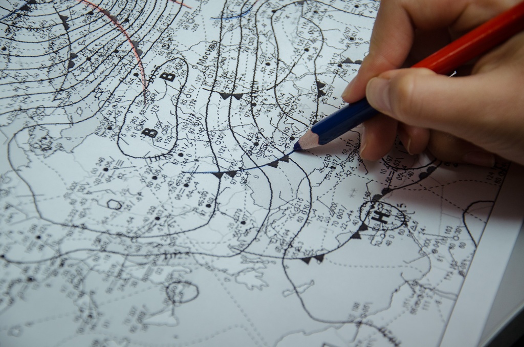 Синоптическая карта – это один из важнейших инструментов в работе синоптиков. На карте, на которой нанесены данные приземных метеорологических станций наблюдательной сети, специалисты могут видеть циклоны, антициклоны, характеристики погоды и воздушных масс. Раньше данные наносились вручную, синоптики «поднимали» карту разноцветными карандашами, проводили линии равного давления, очерчивали области осадков и других атмосферных явлений, рисовали линии атмосферных фронтов: красным цветом - теплые, синим - холодные.