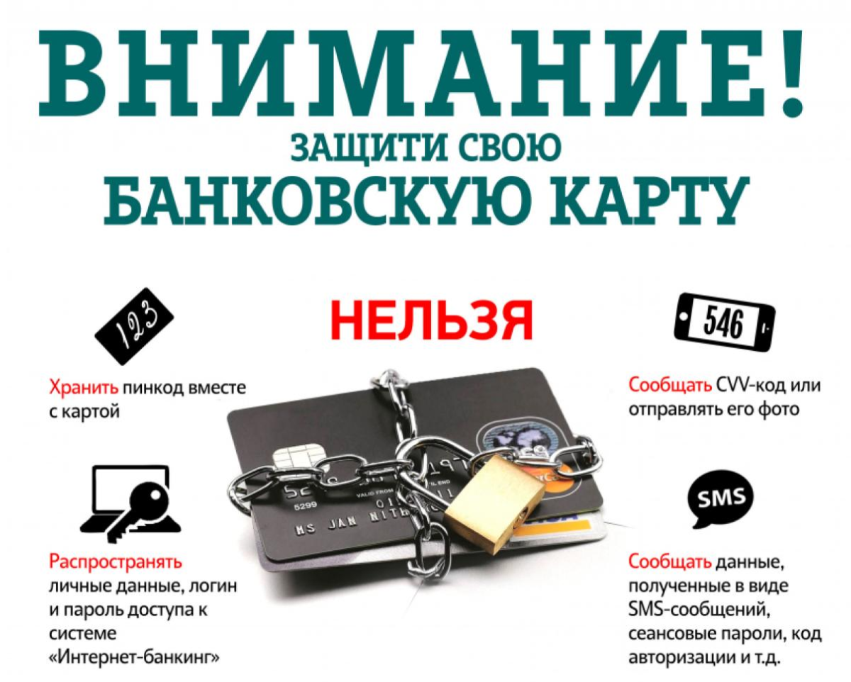 Помните, что трёхзначный код (CVC2/CVV2), расположенный на обороте карты, даёт возможность проводить операции с использованием вашей карты! Для перевода средств на вашу карту данный код никогда не требуется. Если у вас просят указать трехзначный код под предлогом того, что эти сведения запрашивает банк, это говорит о том, что с вами общается мошенник.