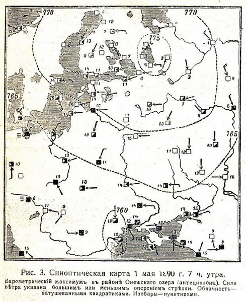 Впервые 169 лет назад – 19 февраля 1855 года – директор Парижской обсерватории Урбен Леверье (1811–1877), представил Парижской академии наук оперативную карту погоды в Европе на интервал времени между 9 и 10 часами утра того же дня. На первой карте были нарисованы линии равного давления-изобары, и обнаружилось, что линии имеют замкнутую форму и очерчивают области высокого и низкого давления, и именно они формируют погоду.