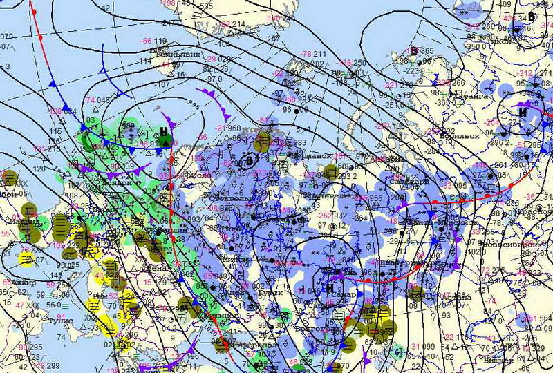 Синоптики, изучая карты, видят, как движутся теплые и холодные воздушные массы, как формируются и проходят различные стадии циклоны и антициклоны, как и с какой скоростью перемещаются атмосферные фронты.