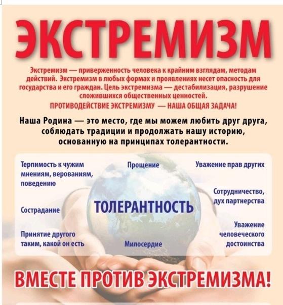 В последние годы мир столкнулся с новой социальной реальностью – экстремизмом. Экстремизм выражается в нетерпимости по отношению к приверженцам иных взглядов, путем словесного выражения или совершения действий не толерантного характера вплоть до применения насилия.