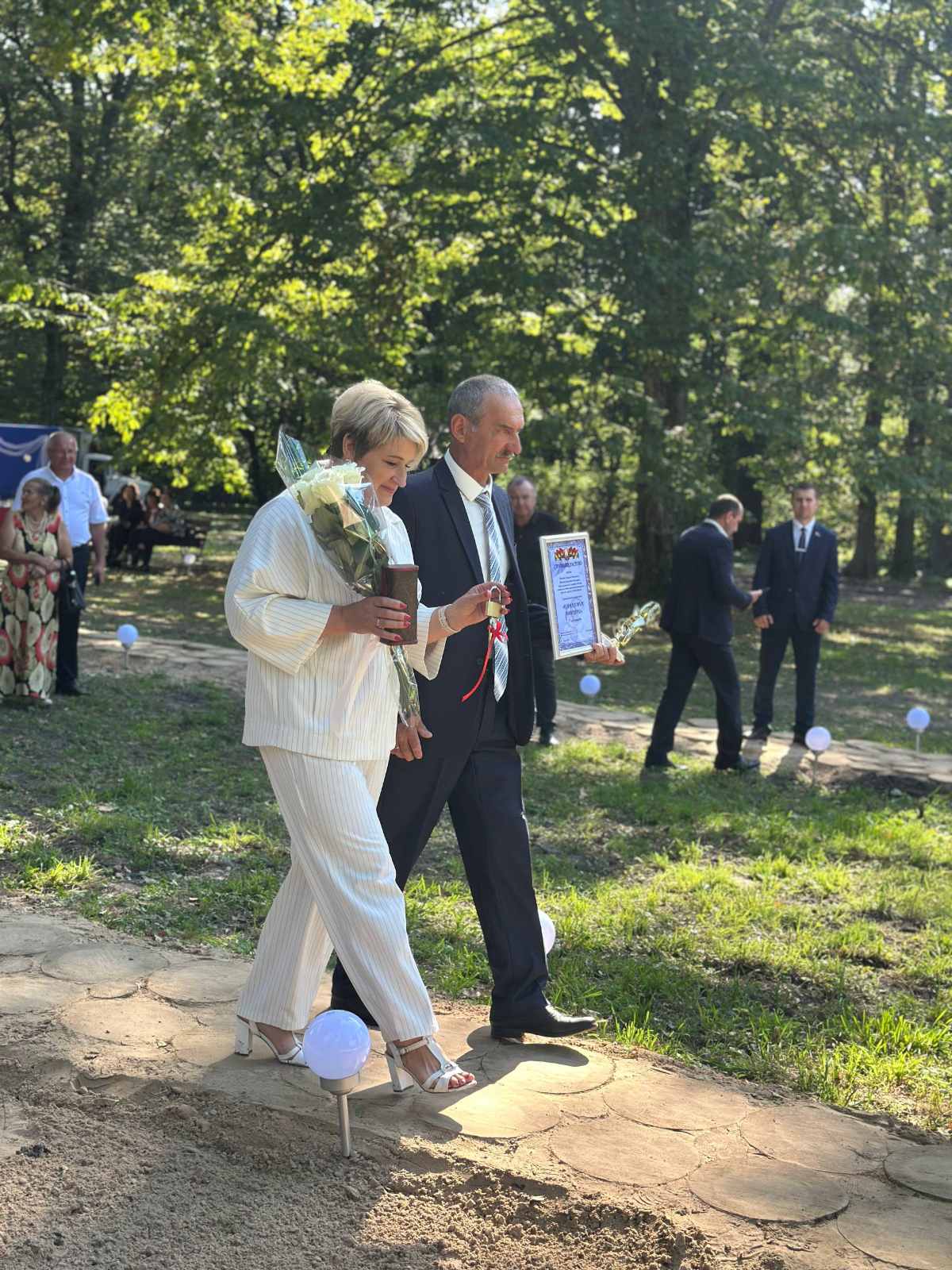 В честь торжественного открытия обновлённого парка Вишневецких в Брагинском районе представителями Брагинского районного исполнительного комитета на мероприятие была приглашена семейная пара Молочко Николай и Валентина, которые являются сотрудниками метеостанции Брагин Филиала «Гомельоблгидромет».