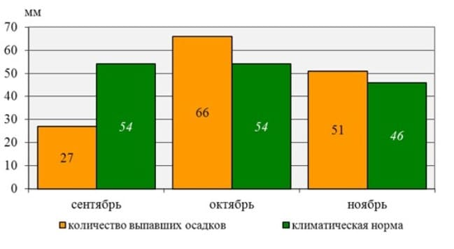 Колькасць ападкаў за восень 2025 года і кліматычная норма