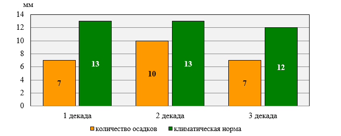 During all three decades of the month, there was a shortage of precipitation.