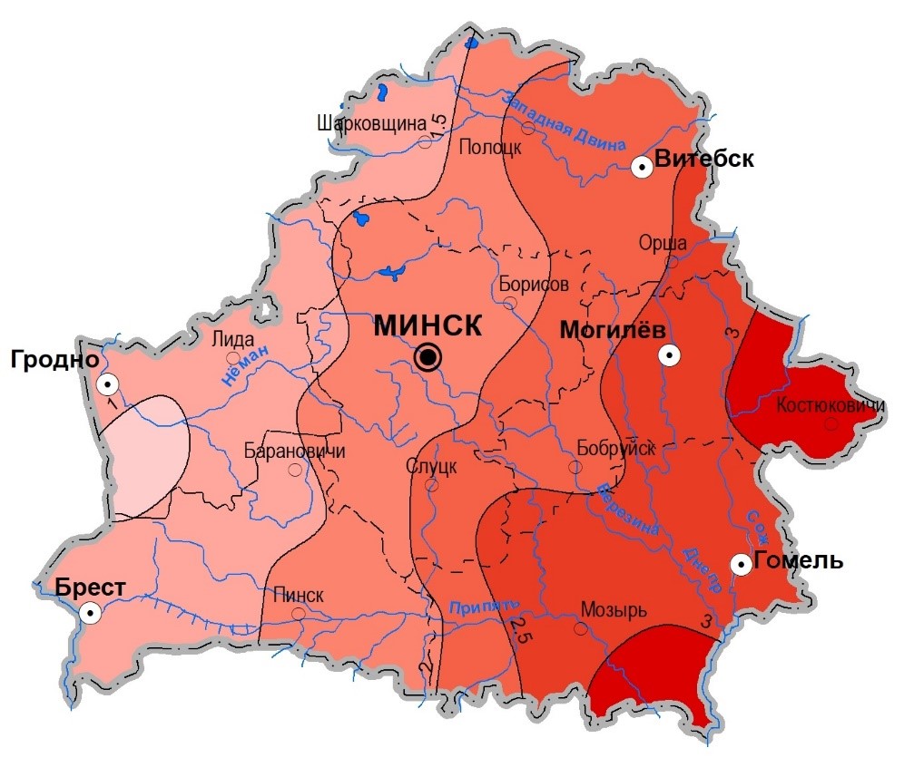 In the regional context, the highest values of positive deviations of air temperature from the climatic norm were noted in the Gomel and Mogilev regions (on average, 2.7°C for each region), in the Grodno region the deviations were the lowest (1.1°C).