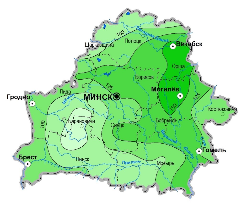 By region, the most precipitation was recorded in the Vitebsk and Mogilev regions, with an average of 59 mm for each region, or 116 and 130% of the norm, respectively. The lowest is in the Brest region – 39 mm, or 92% of the norm.