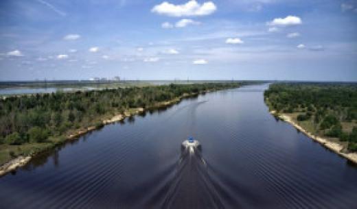 On the Neman River near the city of Grodno, the water level is below the mark that limits navigation.