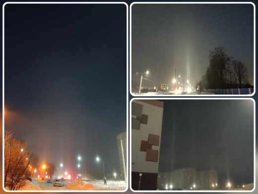 Утром 14 января жители г. Жлобина наблюдали разноцветные световые столбы, которые исходили от всех уличных фонарей, сигналов светофора и даже фар движущихся автомобилей. Это атмосферное оптическое явление – световые столбы.