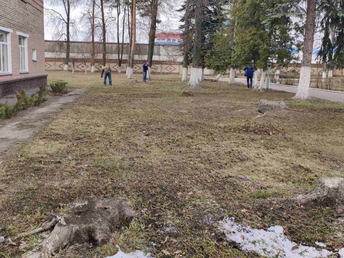 Вооружившись граблями, мётлами и мешками для мусора, работники филиала с энтузиазмом выполняли уборку территории: была убрана прошлогодняя листва, сухая трава, сухие ветки и сухостой, очищены от утрамбовавшегося снега и наледи дорожки, приведены в порядок клумбы.
