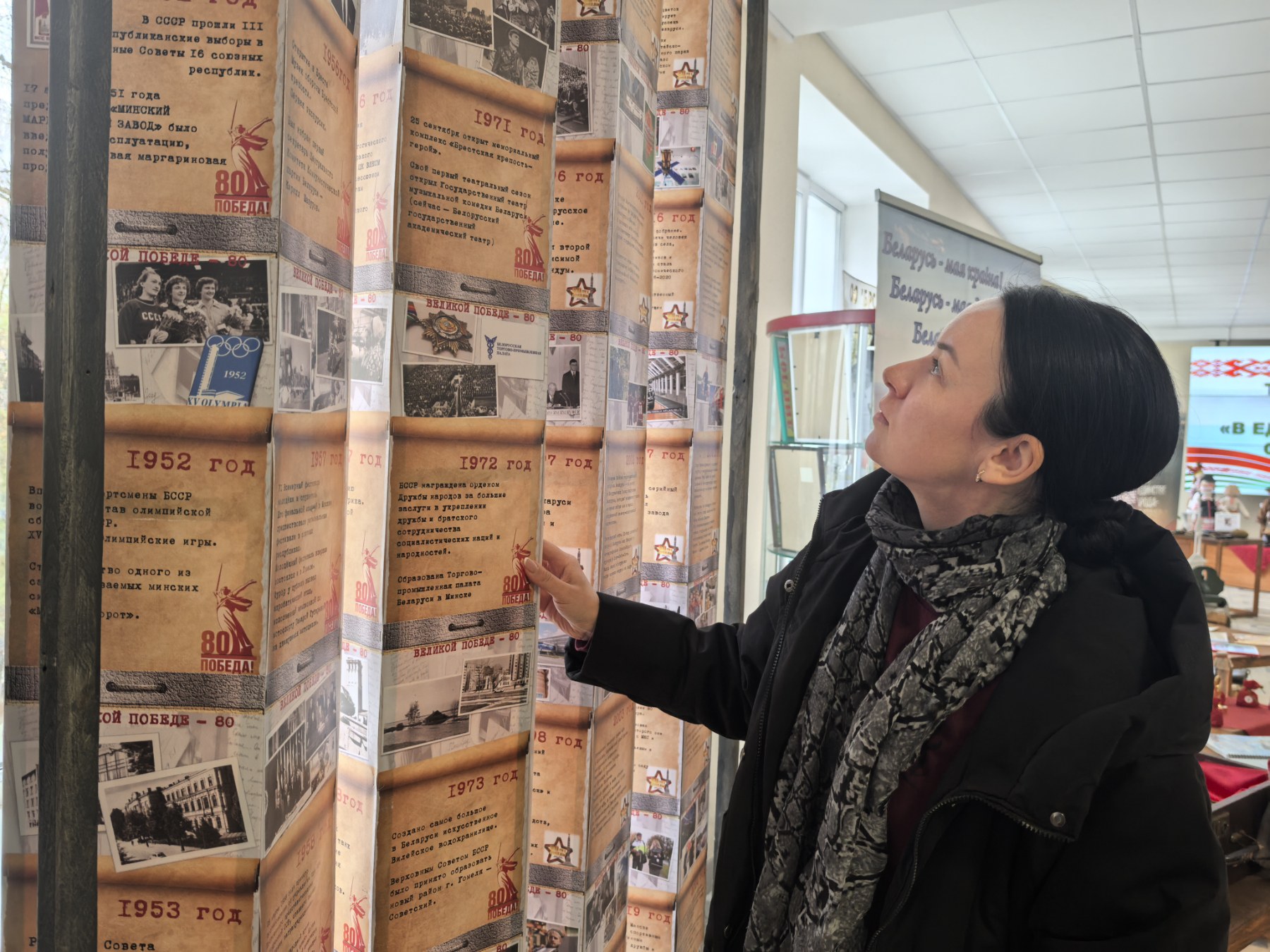 Кроме того, выставка посвящена судьбе белорусского народа, путям его национально-государственного самоопределения, объединению Западной Белоруссии и БССР в 1939 году, а также развитию нашего региона на современном этапе. На ней представлены творческие работы учебных заведений города, а также тематические стенды, посвящённые событиям Великой Отечественной войны, напоминающие о важности сохранения исторической памяти.