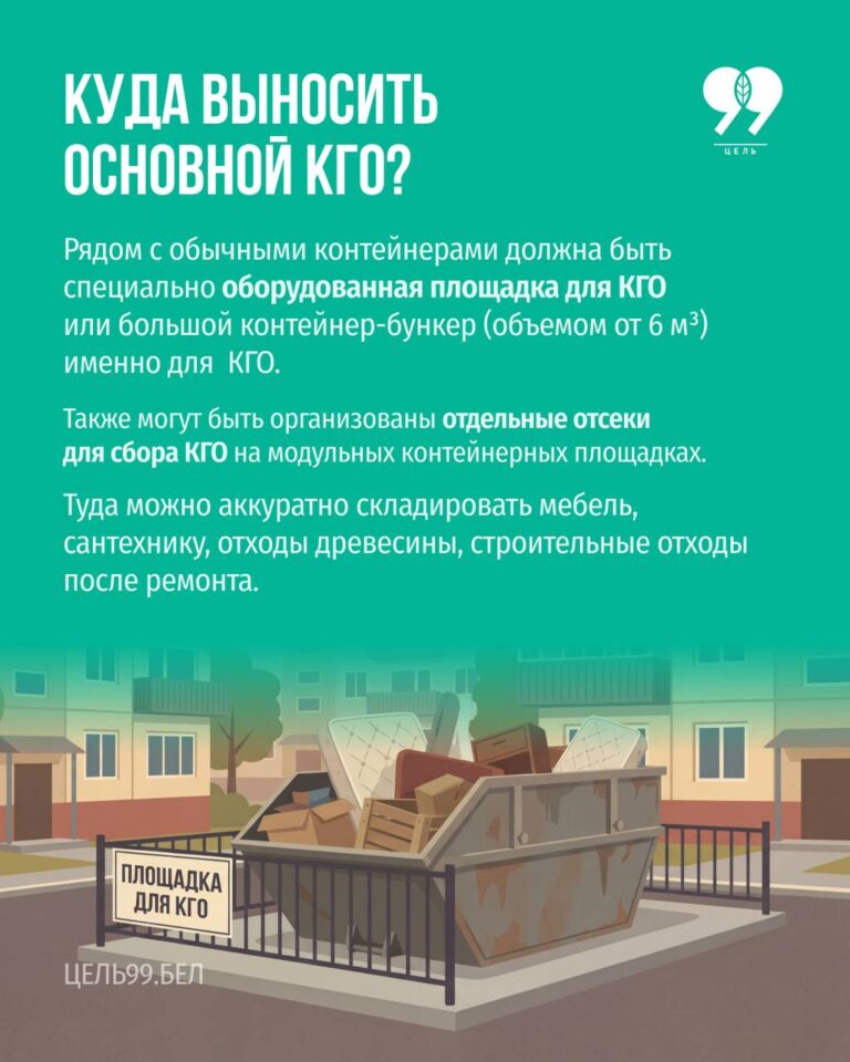 Рядом с обычными контейнерами должна быть специально оборудованная площадка для КГО или большой контейнер-бункер (объемом от 6 м³) именно для КГО.
