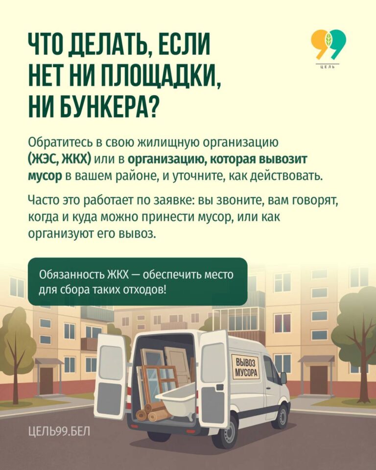 Обратитесь в свою жилищную организацию (ЖЭС, ЖКХ) или в организацию, которая вывозит мусор в вашем районе, и уточните, как действовать.