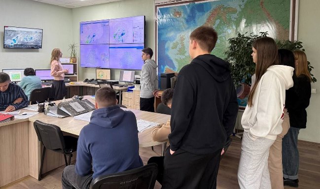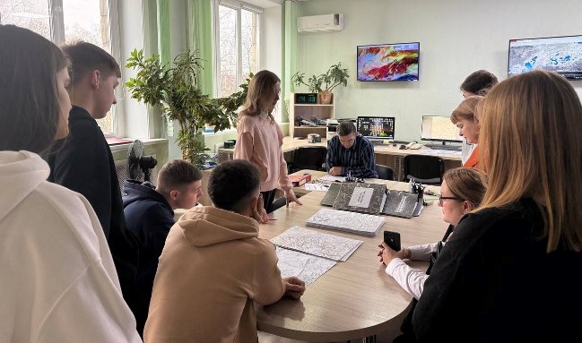 Первым этапом экскурсии стало посещение службы метеорологических прогнозов. Здесь будущих специалистов встретила Марина Лукша, заместитель начальника службы, которая подробно рассказала о процессе составления прогнозов погоды.Студенты узнали, что современный прогноз — это сложный многоступенчатый процесс, включающий сбор и анализ данных приземных метеорологических, высотных аэрологических наблюдений, данных радиолокационного и спутникового мониторинга, а также обработку синоптических карт с помощью специализированных программных комплексов, обзор численных моделей атмосферы, обобщение полученной фактической и прогностической информации на основе опыта синоптика.